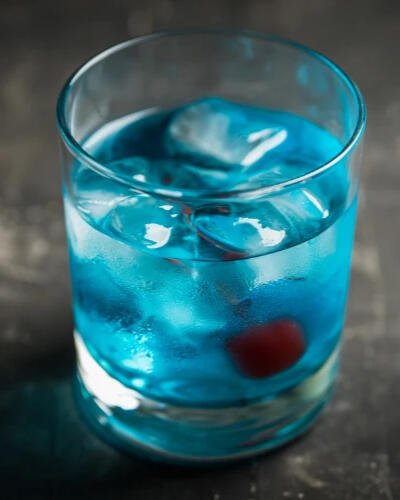 Cerberus' Gin and pixie berry vodka shaken together in ice with dry vermouth and some blue pigments. A light & refreshing drink with an alluring aroma. Garnished with a single cherry.